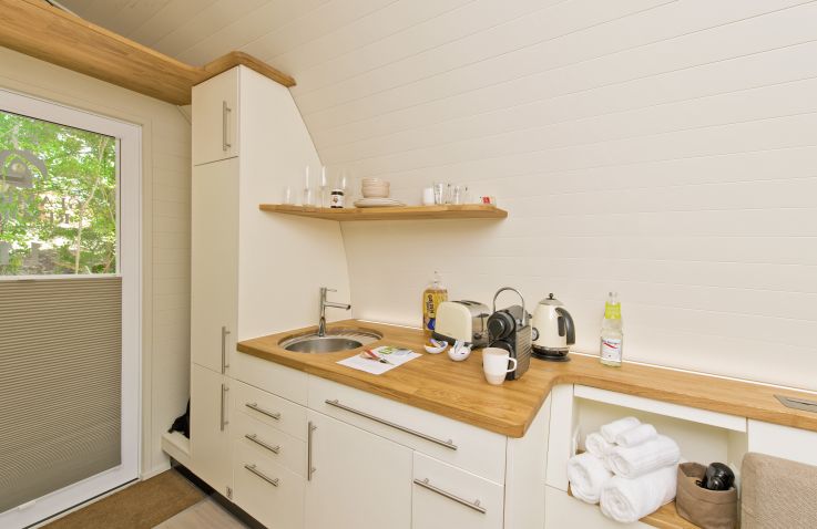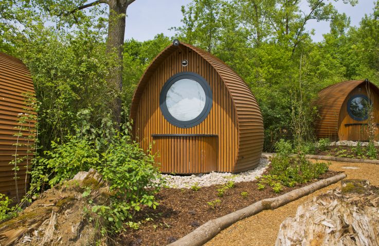 Elk natuurhuisje biedt comfortabel plaats aan twee personen. Daarnaast zijn er in de zones Woudtuin en Zonnentuin twee huisjes met drie bedden beschikbaar tegen een kleine meerprijs. De compacte huisjes hebben een eenvoudige, elegante en doordachte inrichting.
