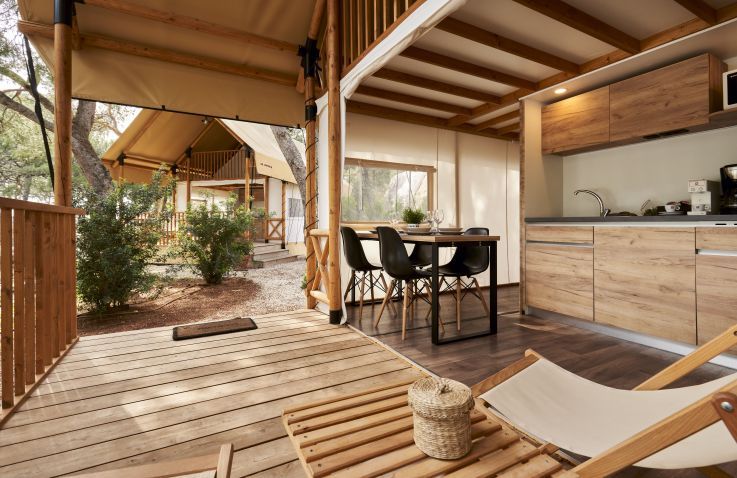 Bij Lakeside Petzen Glamping kun je verblijven in 3 soorten accommodaties: Luxe stacaravans, boomhutten of safaritenten. Vooral de laatste twee accommodatietypes geven je een echt glamping gevoel! De safaritenten voor 2 of 6 personen staan naast de vuurplaats. De tenten hebben heerlijke bedden, eigen sanitair en een gemeubileerd terras. De tenten hebben ook een volledig uitgeruste keuken zodat je zelf kunt koken. Een van de safaritenten heeft zelfs meerdere verdiepingen. Dit betekent dat er een balkon is met een prachtig uitzicht.