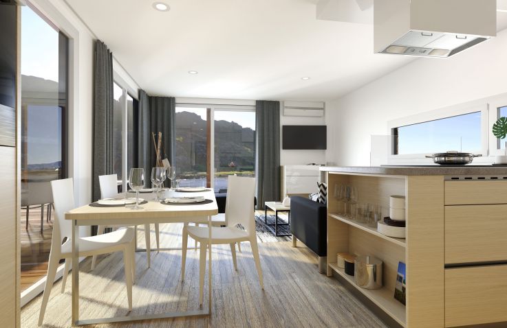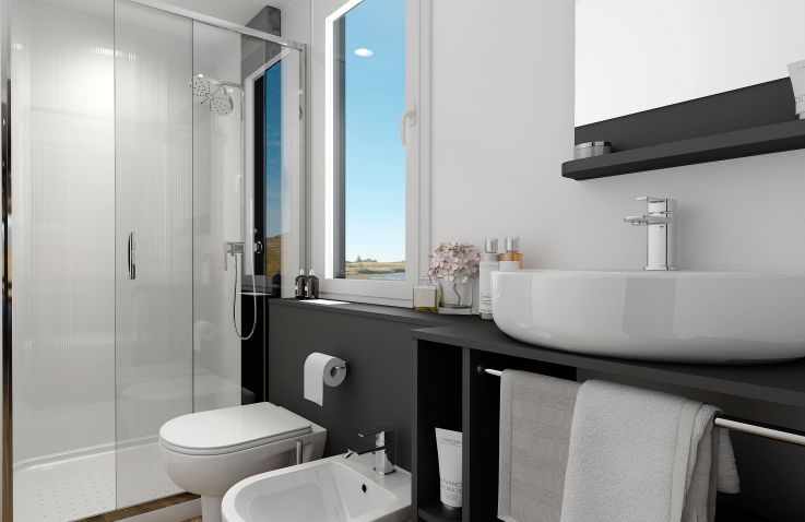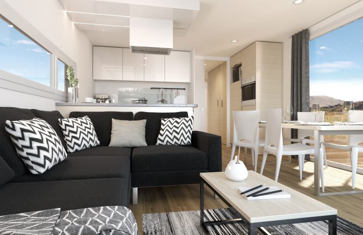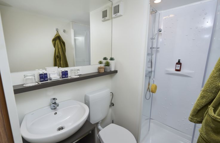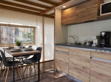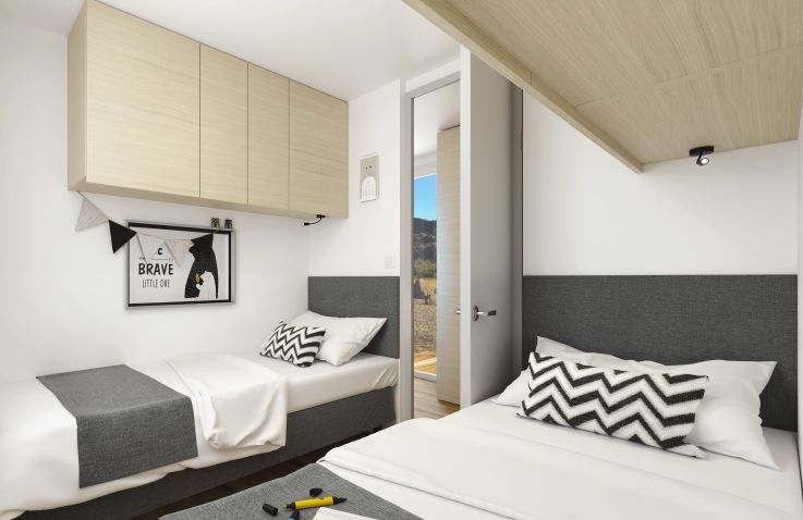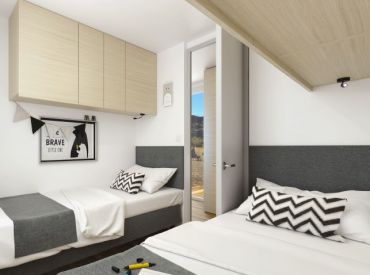 De stacaravans zijn gloednieuw, hebben een prachtig interieur en zijn geschikt voor maximaal 6 personen. De accommodatie heeft twee aparte slaapkamers, een met een tweepersoonsbed en de andere met twee eenpersoonsbedden. Er is ook een keuken, een badkamer, een gezellige woonkamer en een terras met uitzicht. De stacaravans hebben ook een slaapbank voor nog twee personen.