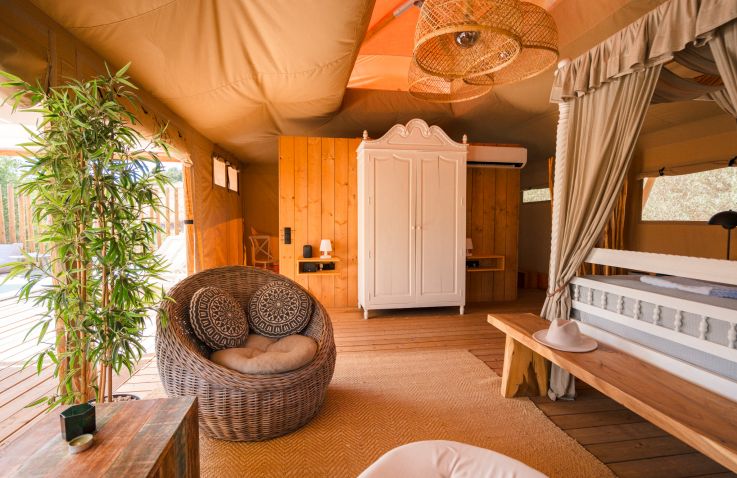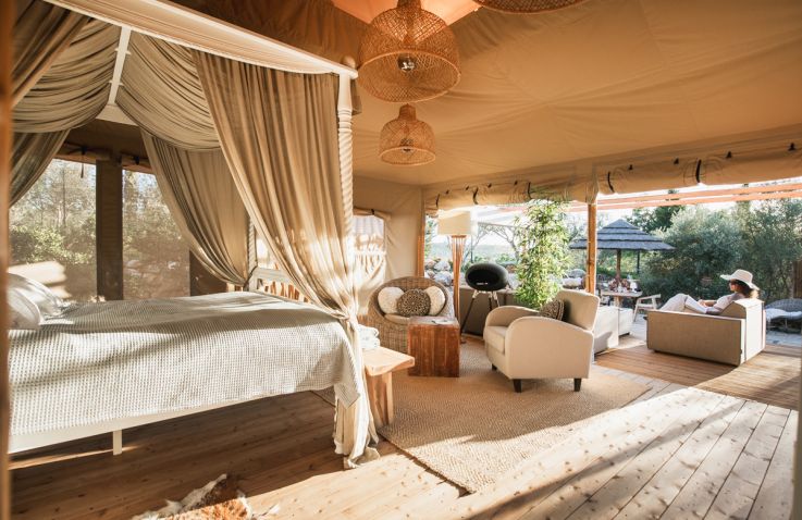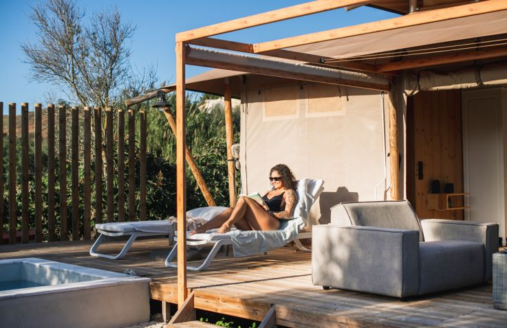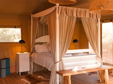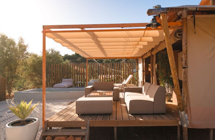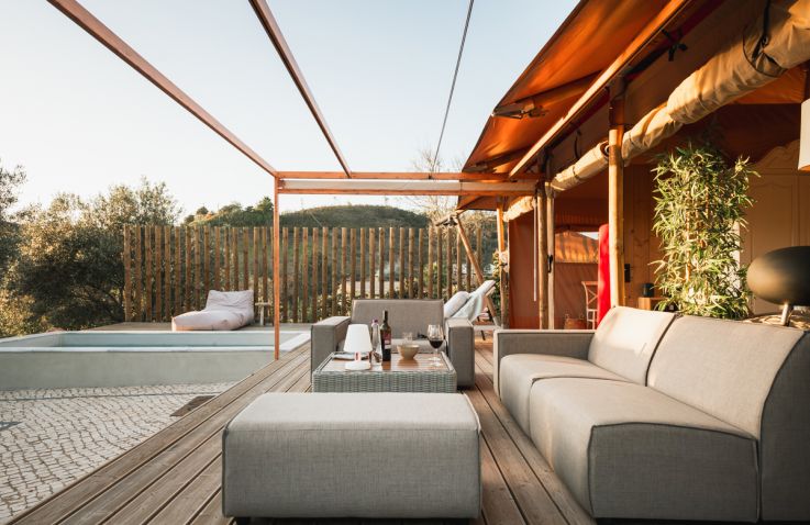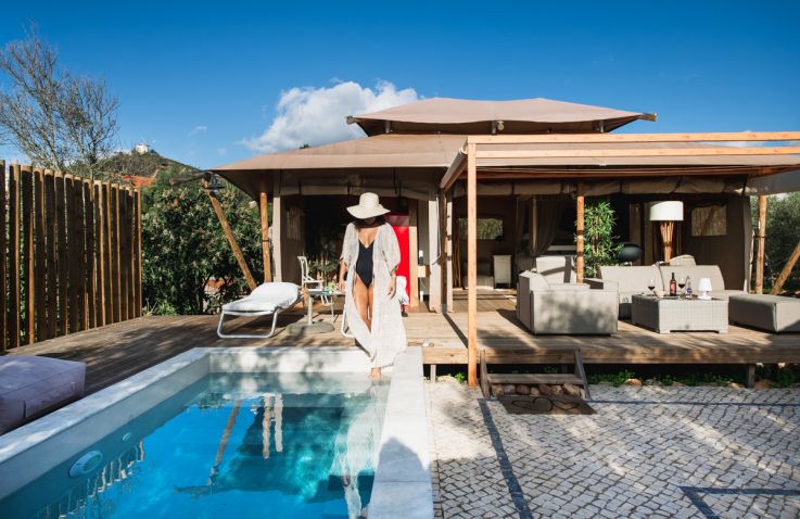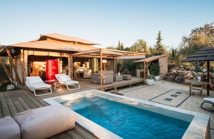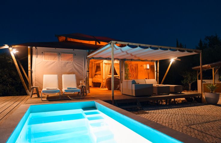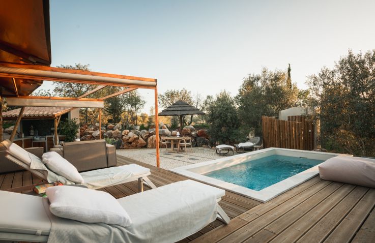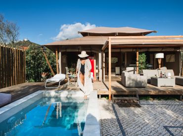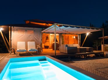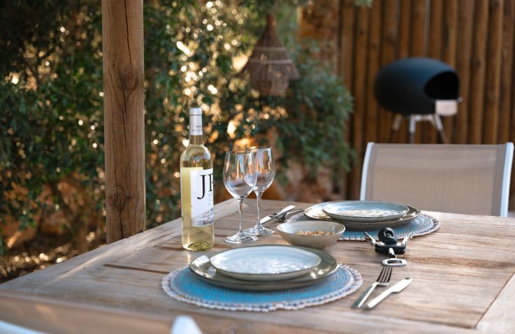Ontdek de verfijnde faciliteiten van Lodge Lua, een toevluchtsoord waar comfort en luxe samenkomen. Deze idyllische accommodatie biedt een ruimte van ca. 80 m2, met een hemelbed dat bij het ontwaken de magie van de omgeving vangt. Het privézwembad, schitterend onder de stralende zon, nodigt uit tot verfrissing en ontspanning, terwijl de buitenkeuken een culinair avontuur in de natuur belooft. Bij deze lodge in Portugal geniet je van het buitenleven met luxe extra's. Airconditioning, een complete keuken en een badkamer zorgen voor een verblijf dat aan al jouw wensen voldoet.