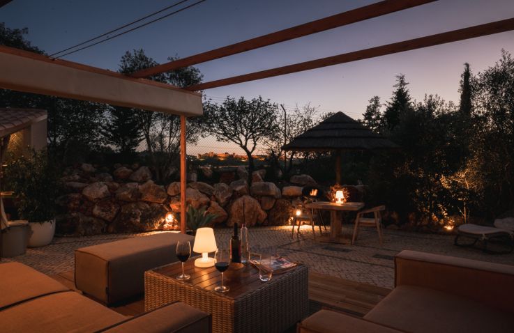 Geniet van de natuurlijke rust en privacy die Lodge Lua biedt, omgeven door 9000 m2 weelderig terrein. De buitendouche biedt een rustige en ontspannen ervaring, terwijl je één wordt met de omgeving met uitkijkt over het groen. Ontwaak met het geluid van tjirpende krekels en relax onder de warme zon. In de buitenkeuken bereid je maaltijden met verse lokale ingrediënten, terwijl je geniet van het panoramische uitzicht op het verlichte kasteel van Silves.