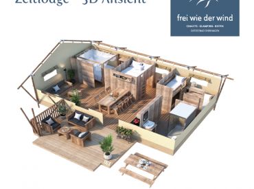 De 65 m² Tent Lodge III is speciaal ontworpen voor gezinnen met kinderen en biedt ruimte aan maximaal vier volwassenen en twee kinderen. Naast twee slaapkamers, een met een kingsize bed en een met twee eenpersoonsbedden, wacht de jongere gasten een speciaal hoogtepunt: een stapelbed voor twee kinderen tot twaalf jaar met een speelkamer eronder die hen uitnodigt om rond te rennen en te ontdekken. Het overdekte terras van 15 m² biedt een beschut toevluchtsoord voor het hele gezin, zelfs bij wisselvallig weer.