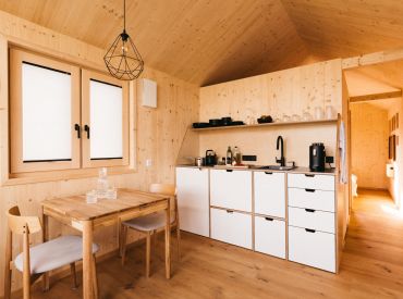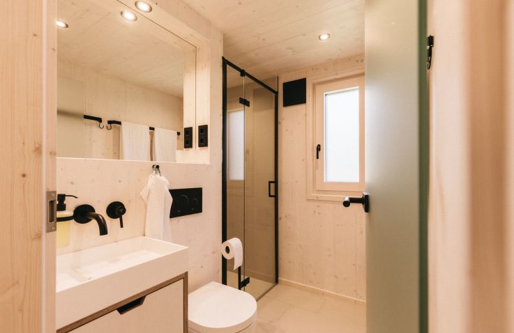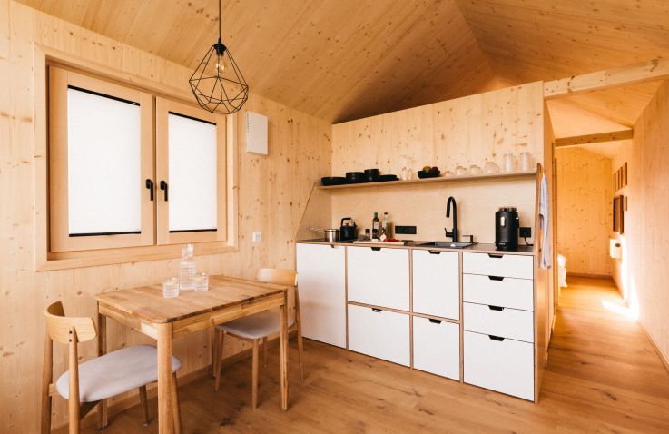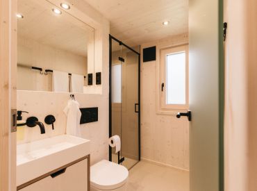 Een modern en duurzaam huis met vloerverwarming op eigen stroom wacht op je bij NaturResort Steinwald. De keuken is volledig uitgerust en biedt alles wat je nodig hebt om te koken, inclusief een vaatwasser en een espressomachine voor de perfecte start van de dag. Het grote panoramische raam nodigt je uit om gewoon tot rust te komen - het liefst met een warme kop thee en een goed boek. Zelfs bij regenachtig weer kun je hier ontspannen en je goed voelen! In de badkamer vind je een inloop-regendouche, een praktische wastafel en een haardroger. Duurzaamheid is erg belangrijk voor NaturResort Steinwald: de dekbedden, kussens en matrassen zijn afkomstig van het ecologische merk Dormiente. Ze gebruiken ook biologisch afbreekbare schoonmaakmiddelen. Buiten kun je het jezelf gemakkelijk maken op gezellige ligstoelen, wandelen door de natuurtuin of verse bessen plukken in de snacktuin. Dankzij de muskietennetten kun je op het overdekte terras genieten van je ontbijt of een diner bij kaarslicht zonder hinderlijk ongedierte.